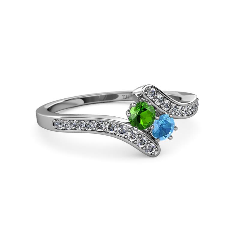 Green Garnet and Blue Topaz 2 Stone with Side Diamonds Womens Bypass Engagement Ring 0.75 ctw 14K White Gold More Details ...