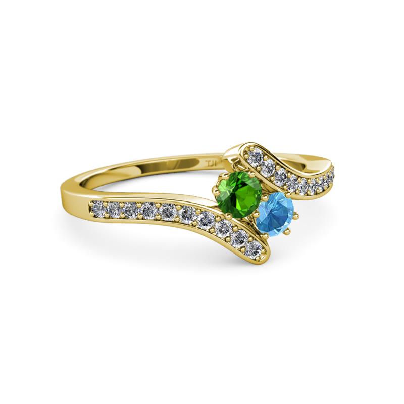 Green Garnet and Blue Topaz 2 Stone with Side Diamonds Womens Bypass Engagement Ring 0.75 ctw 14K Yellow Gold More Details ...