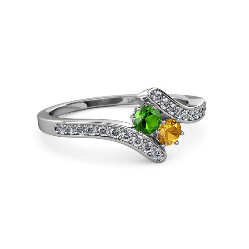 Green Garnet and Citrine 2 Stone with Side Diamonds Womens Bypass Engagement Ring 0.71 ctw 14K White Gold More Details ...