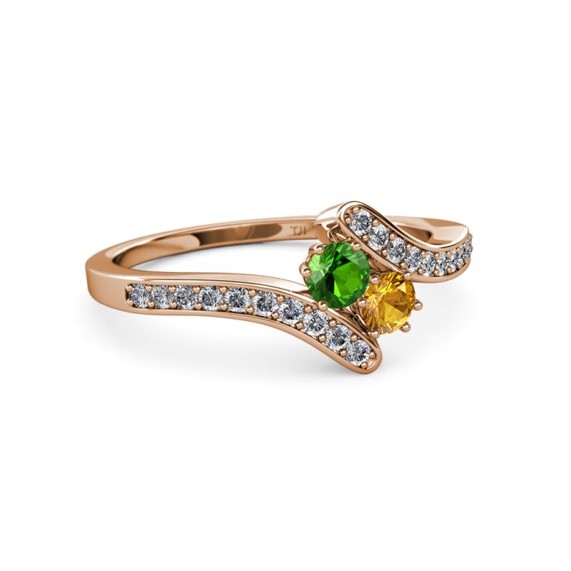 Green Garnet and Citrine 2 Stone with Side Diamonds Womens Bypass Engagement Ring 0.71 ctw 14K Rose Gold More Details ...