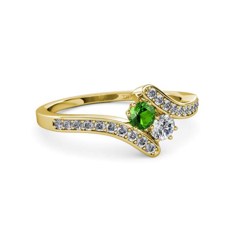 Green Garnet and Diamond 2 Stone with Side Diamonds Womens Bypass Engagement Ring 0.73 ctw 14K Yellow Gold More Details ...