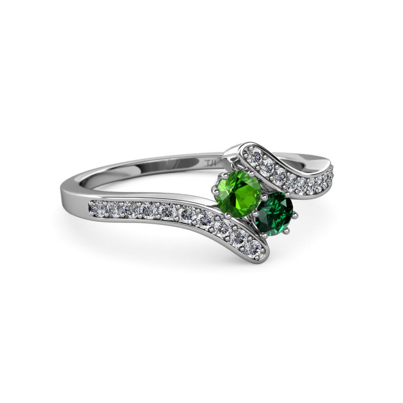 Green Garnet and Emerald 2 Stone with Side Diamonds Womens Bypass Engagement Ring 0.71 ctw 14K White Gold More Details ...