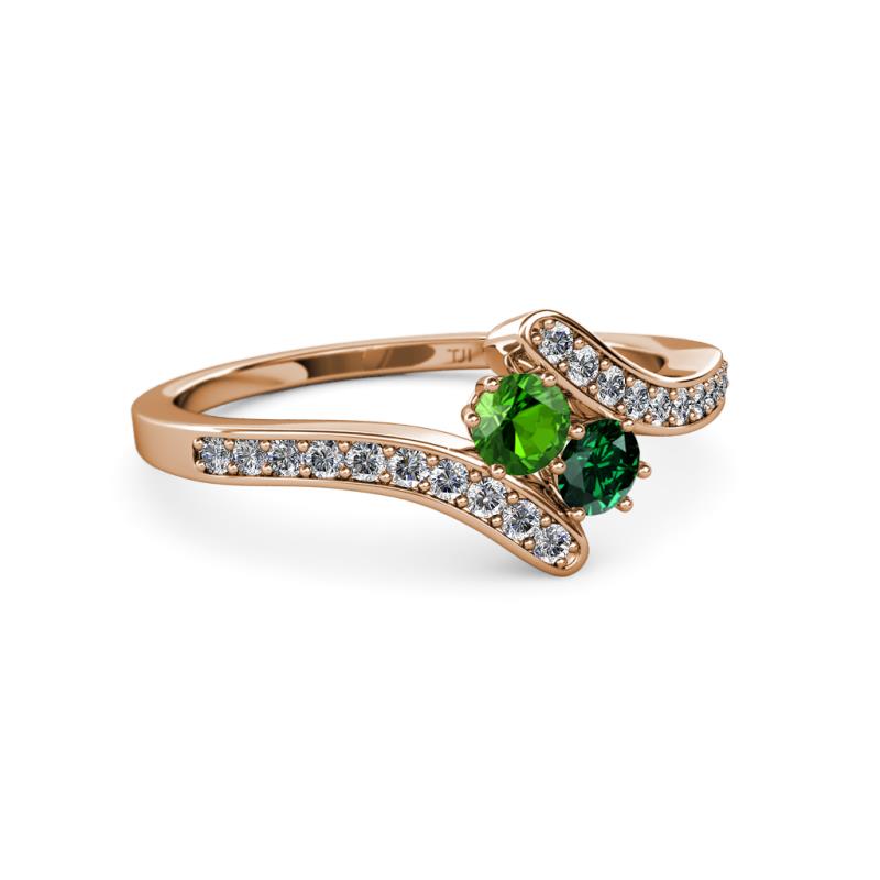 Green Garnet and Emerald 2 Stone with Side Diamonds Womens Bypass Engagement Ring 0.71 ctw 14K Rose Gold More Details ...