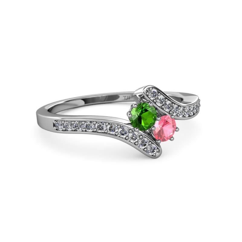 Green Garnet and Pink Tourmaline 2 Stone with Side Diamonds Womens Bypass Engagement Ring 0.71 ctw 14K White Gold More Details ...