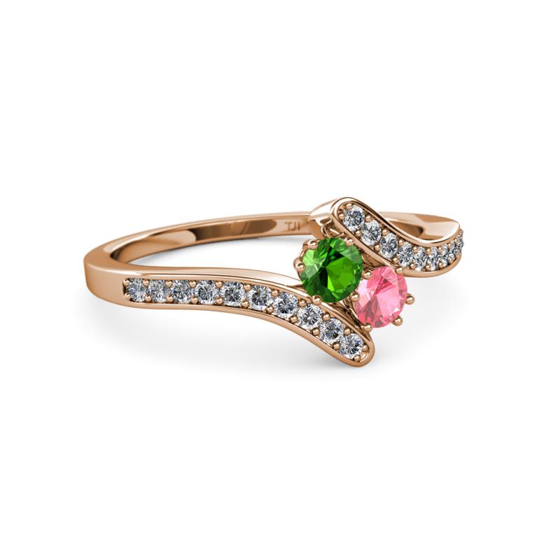 Green Garnet and Pink Tourmaline 2 Stone with Side Diamonds Womens Bypass Engagement Ring 0.71 ctw 14K Rose Gold More Details ...