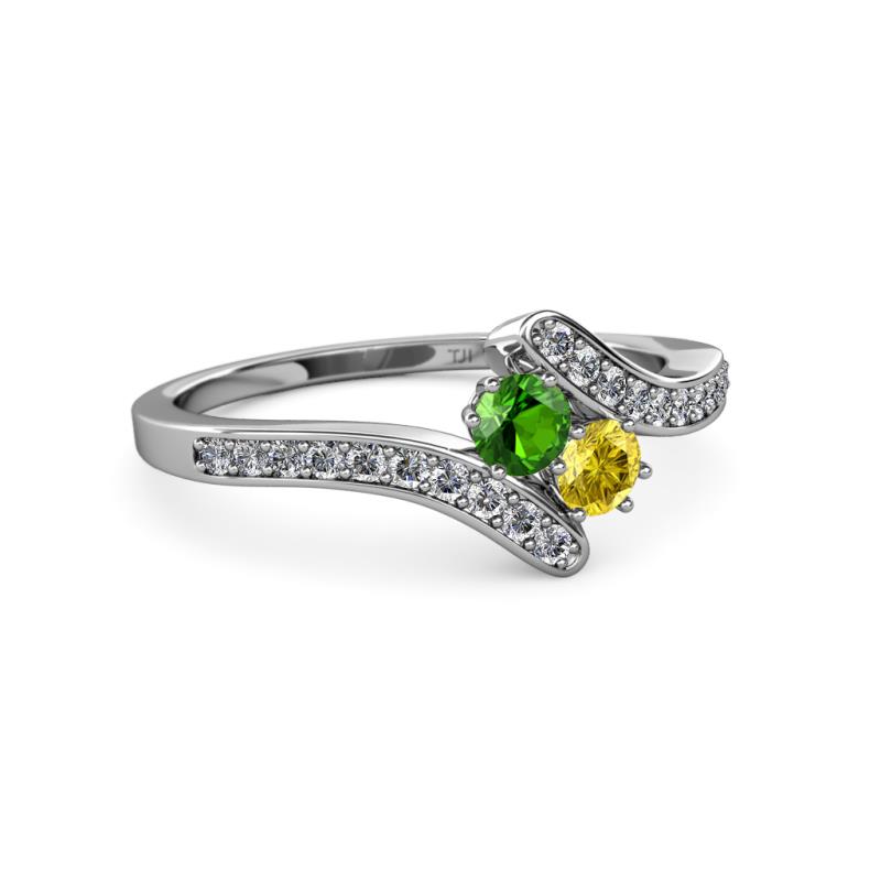 Green Garnet and Yellow Sapphire 2 Stone with Side Diamonds Womens Bypass Engagement Ring 0.74 ctw 14K White Gold More Details ...