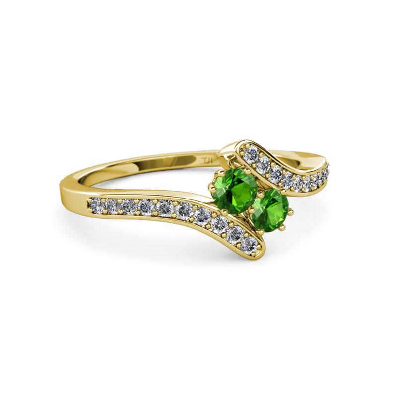 Green Garnet 2 Stone with Side Diamonds Womens Bypass Engagement Ring 0.76 ctw 14K Yellow Gold More Details ...