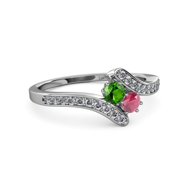 Green and Rhodolite Garnet 2 Stone with Side Diamonds Womens Bypass Engagement Ring 0.76 ctw 14K White Gold More Details ...