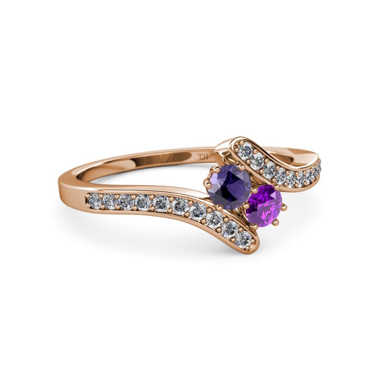 Iolite and Amethyst 2 Stone with Side Diamonds Womens Bypass Engagement Ring 0.66 ctw 14K Rose Gold More Details ...