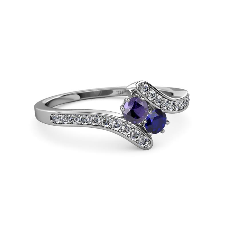 Iolite and Blue Sapphire 2 Stone with Side Diamonds Womens Bypass Engagement Ring 0.69 ctw 14K White Gold More Details ...