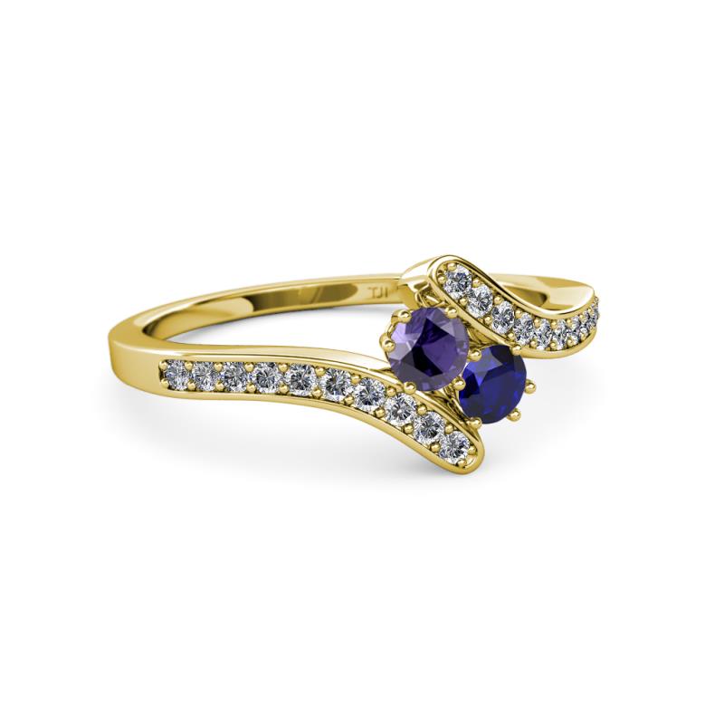 Iolite and Blue Sapphire 2 Stone with Side Diamonds Womens Bypass Engagement Ring 0.69 ctw 14K Yellow Gold More Details ...