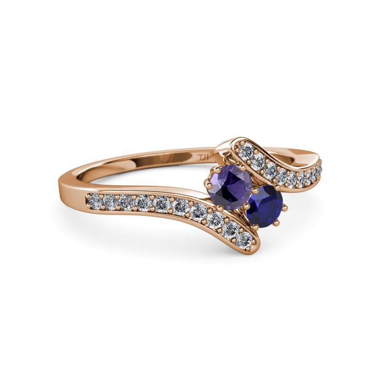 Iolite and Blue Sapphire 2 Stone with Side Diamonds Womens Bypass Engagement Ring 0.69 ctw 14K Rose Gold More Details ...