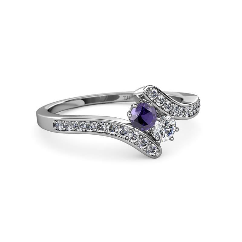 Iolite and Diamond 2 Stone with Side Diamonds Womens Bypass Engagement Ring 0.68 ctw 14K White Gold More Details ...