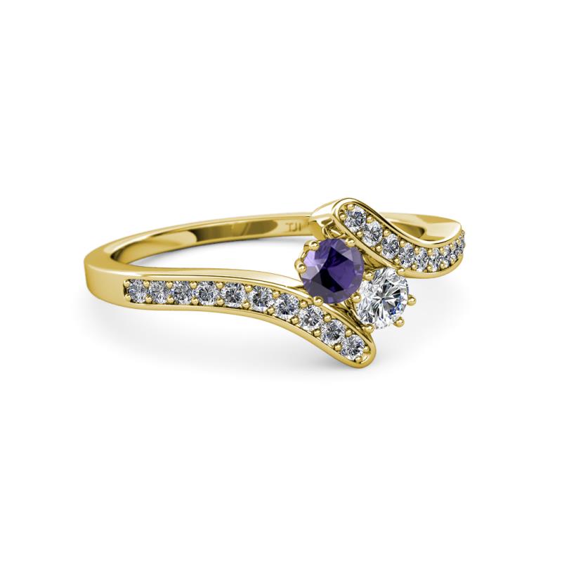 Iolite and Diamond 2 Stone with Side Diamonds Womens Bypass Engagement Ring 0.68 ctw 14K Yellow Gold More Details ...
