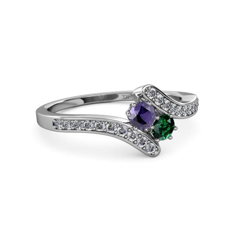 Iolite and Emerald 2 Stone with Side Diamonds Womens Bypass Engagement Ring 0.66 ctw 14K White Gold More Details ...