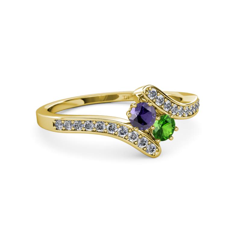 Iolite and Green Garnet 2 Stone with Side Diamonds Womens Bypass Engagement Ring 0.71 ctw 14K Yellow Gold More Details ...