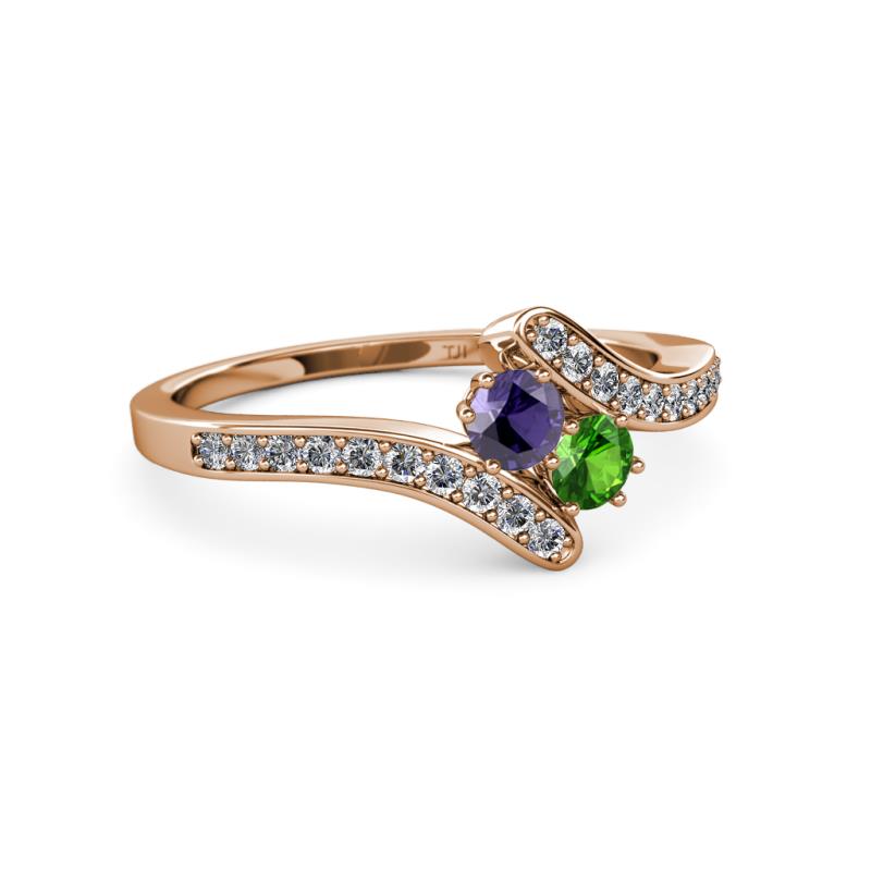 Iolite and Green Garnet 2 Stone with Side Diamonds Womens Bypass Engagement Ring 0.71 ctw 14K Rose Gold More Details ...