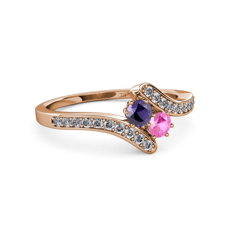 Iolite and Pink Sapphire 2 Stone with Side Diamonds Womens Bypass Engagement Ring 0.69 ctw 14K Rose Gold More Details ...