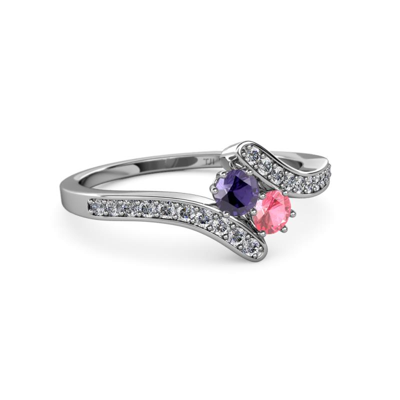 Iolite and Pink Tourmaline 2 Stone with Side Diamonds Womens Bypass Engagement Ring 0.66 ctw 14K White Gold More Details ...