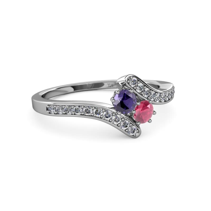 Iolite and Rhodolite Garnet 2 Stone with Side Diamonds Womens Bypass Engagement Ring 0.71 ctw 14K White Gold More Details ...