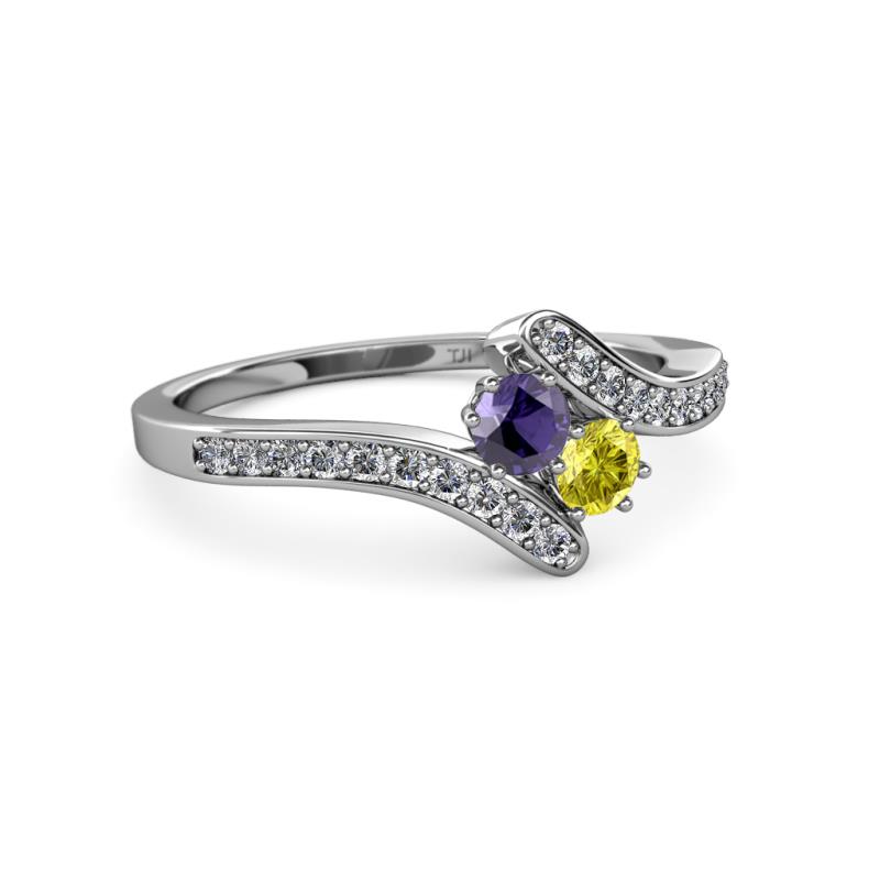 Iolite and Yellow Diamond 2 Stone with Side Diamonds Womens Bypass Engagement Ring 0.68 ctw 14K White Gold More Details ...