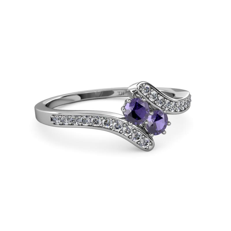 Iolite 2 Stone with Side Diamonds Womens Bypass Engagement Ring 0.66 ctw 14K White Gold More Details ...