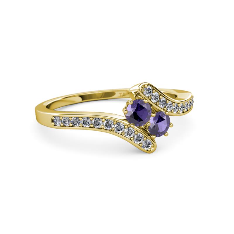 Iolite 2 Stone with Side Diamonds Womens Bypass Engagement Ring 0.66 ctw 14K Yellow Gold More Details ...