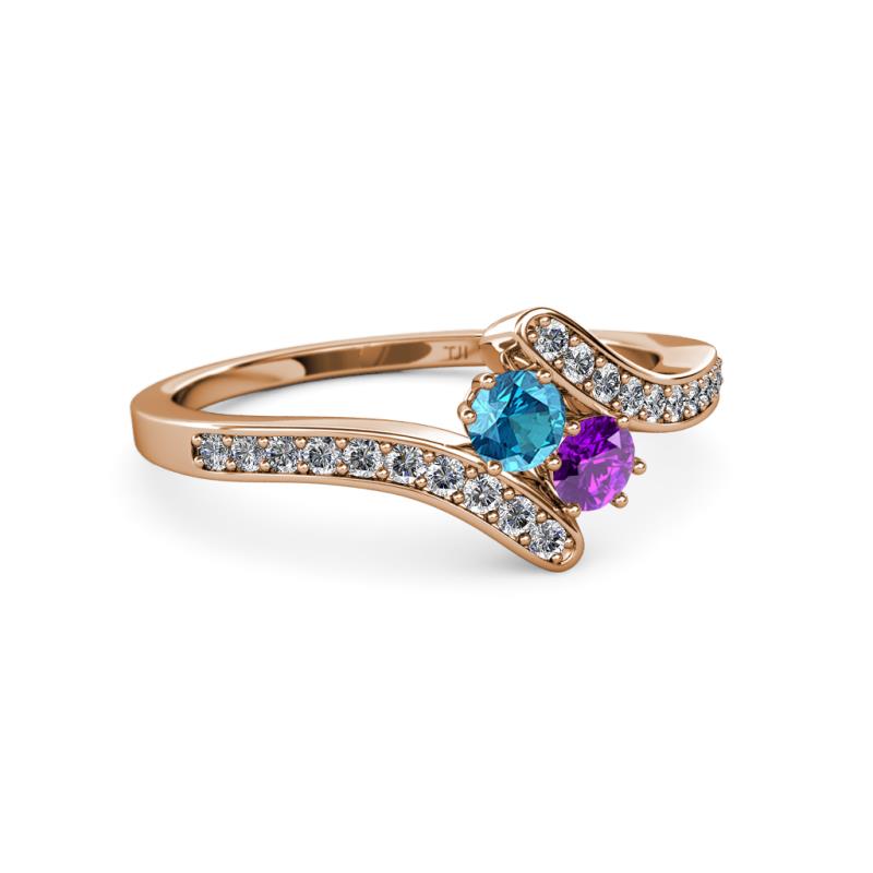 London Blue Topaz and Amethyst 2 Stone with Side Diamonds Womens Bypass Engagement Ring 0.70 ctw 14K Rose Gold More Details ...