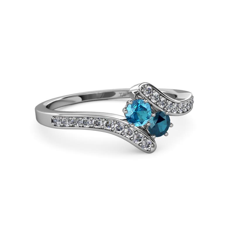 London Blue Topaz and Blue Diamond 2 Stone with Side Diamonds Womens Bypass Engagement Ring 0.72 ctw 14K White Gold More Details ...