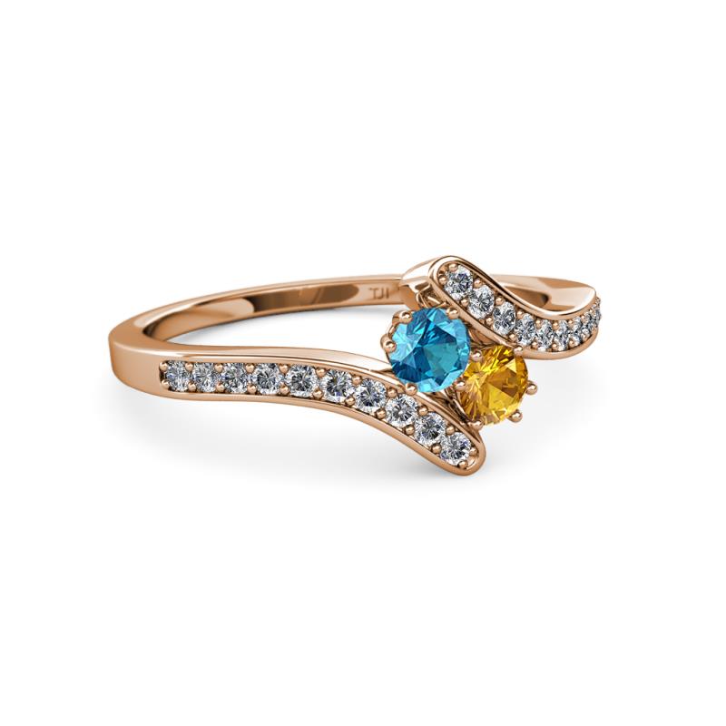 London Blue Topaz and Citrine 2 Stone with Side Diamonds Womens Bypass Engagement Ring 0.70 ctw 14K Rose Gold More Details ...