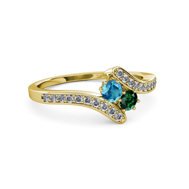 London Blue Topaz and Emerald 2 Stone with Side Diamonds Womens Bypass Engagement Ring 0.70 ctw 14K Yellow Gold More Details ...