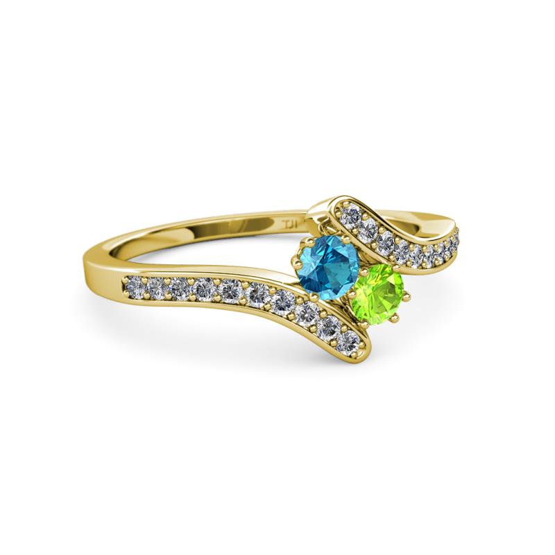 London Blue Topaz and Peridot 2 Stone with Side Diamonds Womens Bypass Engagement Ring 0.75 ctw 14K Yellow Gold More Details ...