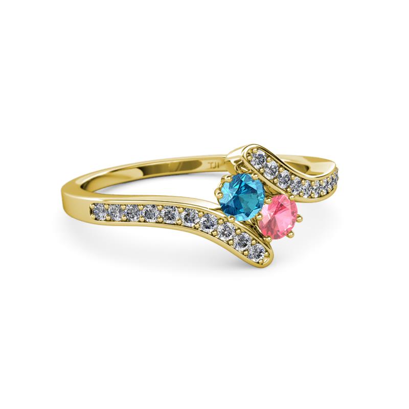 London Blue Topaz and Pink Tourmaline 2 Stone with Side Diamonds Womens Bypass Engagement Ring 0.70 ctw 14K Yellow Gold More Details ...
