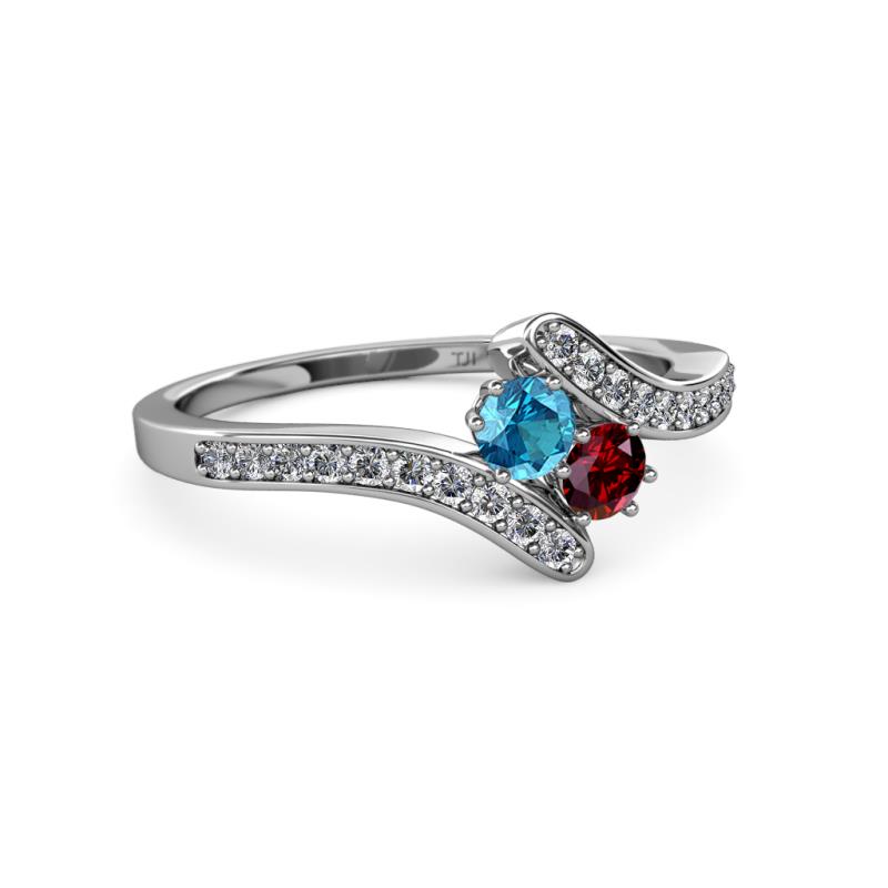 London Blue Topaz and Ruby 2 Stone with Side Diamonds Womens Bypass Engagement Ring 0.73 ctw 14K White Gold More Details ...