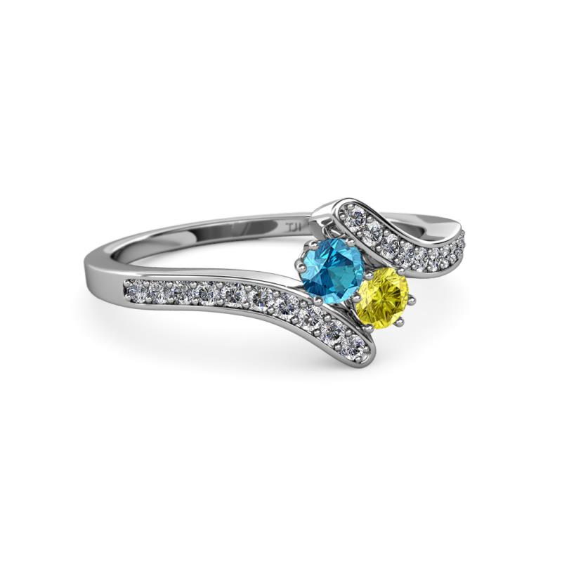 London Blue Topaz and Yellow Diamond 2 Stone with Side Diamonds Womens Bypass Engagement Ring 0.72 ctw 14K White Gold More Details ...