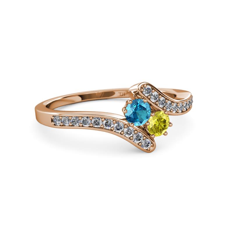 London Blue Topaz and Yellow Diamond 2 Stone with Side Diamonds Womens Bypass Engagement Ring 0.72 ctw 14K Rose Gold More Details ...
