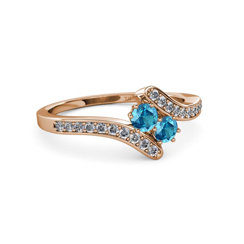 London Blue Topaz 2 Stone with Side Diamonds Womens Bypass Engagement Ring 0.74 ctw 14K Rose Gold More Details ...