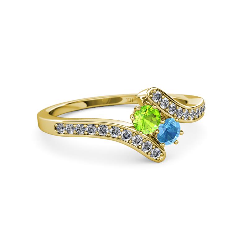 Peridot and Blue Topaz 2 Stone with Side Diamonds Womens Bypass Engagement Ring 0.75 ctw 14K Yellow Gold More Details ...
