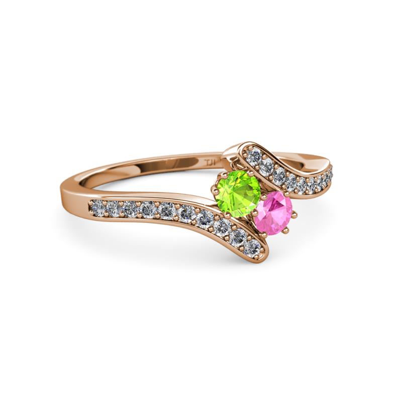 Peridot and Pink Sapphire 2 Stone with Side Diamonds Womens Bypass Engagement Ring 0.74 ctw 14K Rose Gold More Details ...