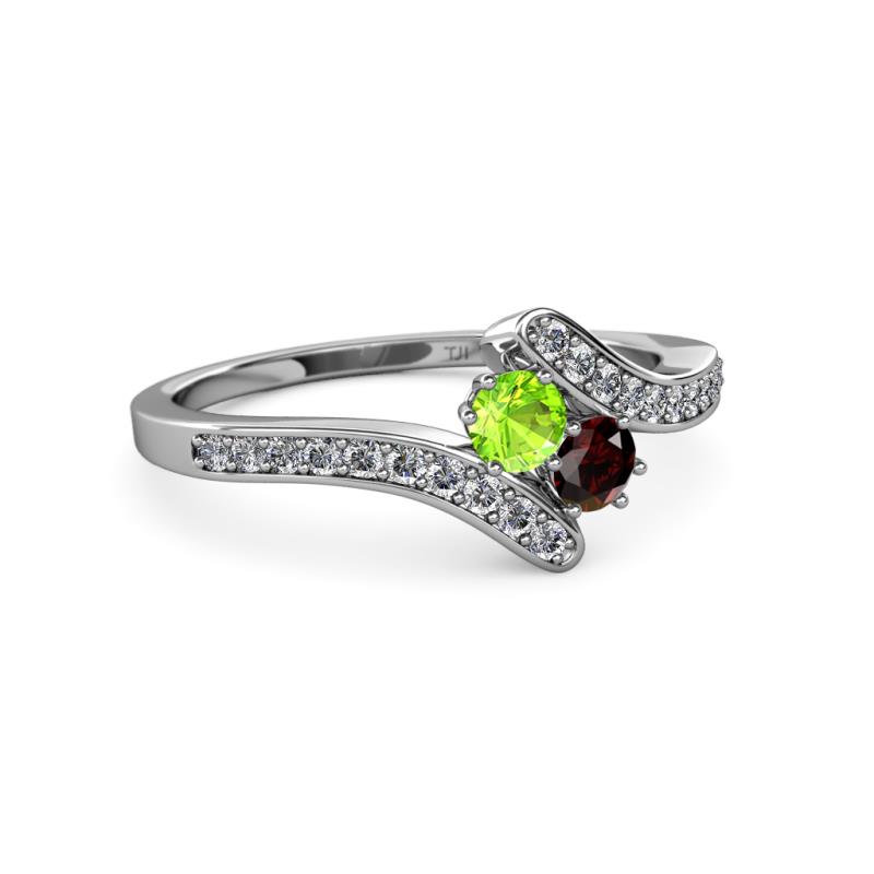 Peridot and Red Garnet 2 Stone with Side Diamonds Womens Bypass Engagement Ring 0.76 ctw 14K White Gold More Details ...
