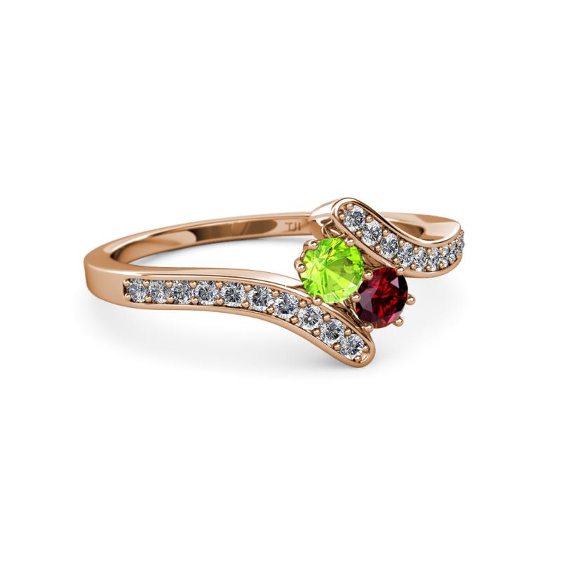 Peridot and Ruby 2 Stone with Side Diamonds Womens Bypass Engagement Ring 0.74 ctw 14K Rose Gold More Details ...