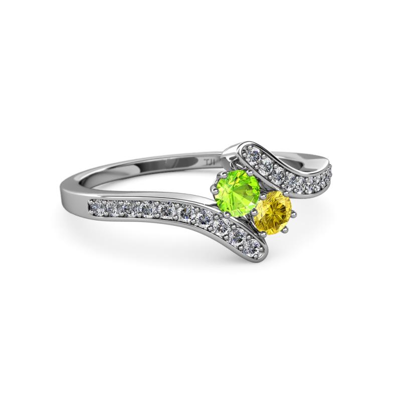Peridot and Yellow Sapphire 2 Stone with Side Diamonds Womens Bypass Engagement Ring 0.74 ctw 14K White Gold More Details ...