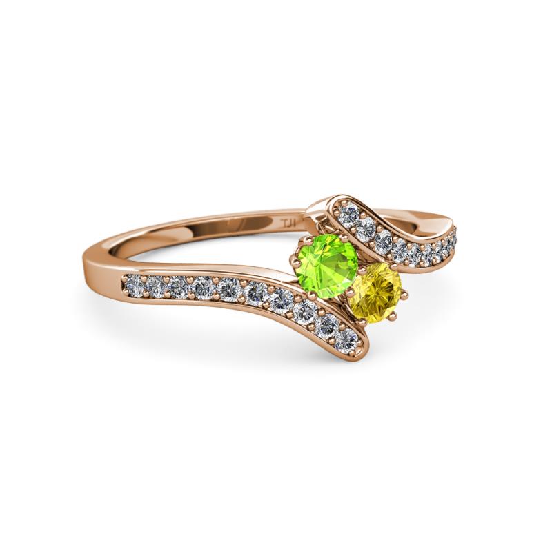 Peridot and Yellow Sapphire 2 Stone with Side Diamonds Womens Bypass Engagement Ring 0.74 ctw 14K Rose Gold More Details ...