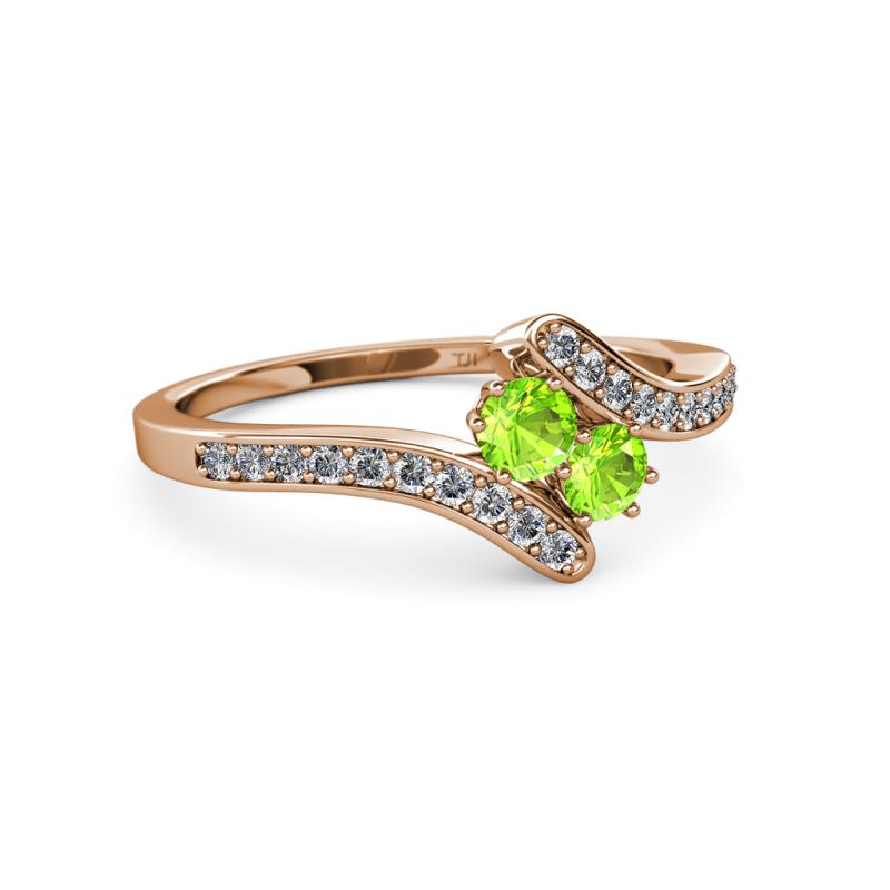 Peridot 2 Stone with Side Diamonds Womens Bypass Engagement Ring 0.76 ctw 14K Rose Gold More Details ...