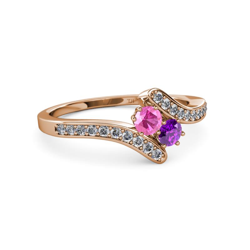 Pink Sapphire and Amethyst 2 Stone with Side Diamonds Womens Bypass Engagement Ring 0.69 ctw 14K Rose Gold More Details ...