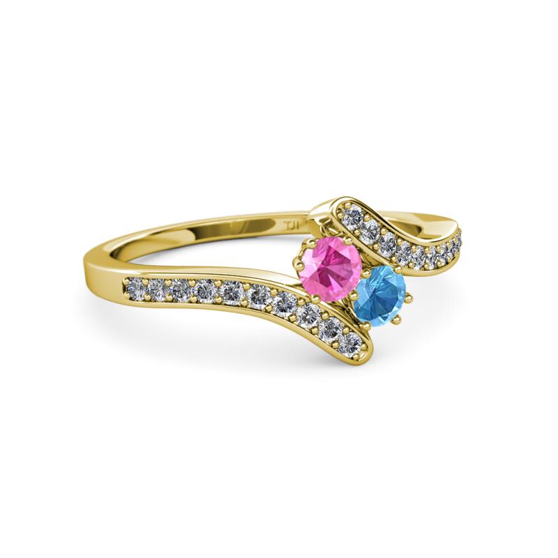 Pink Sapphire and Blue Topaz 2 Stone with Side Diamonds Womens Bypass Engagement Ring 0.73 ctw 14K Yellow Gold More Details ...