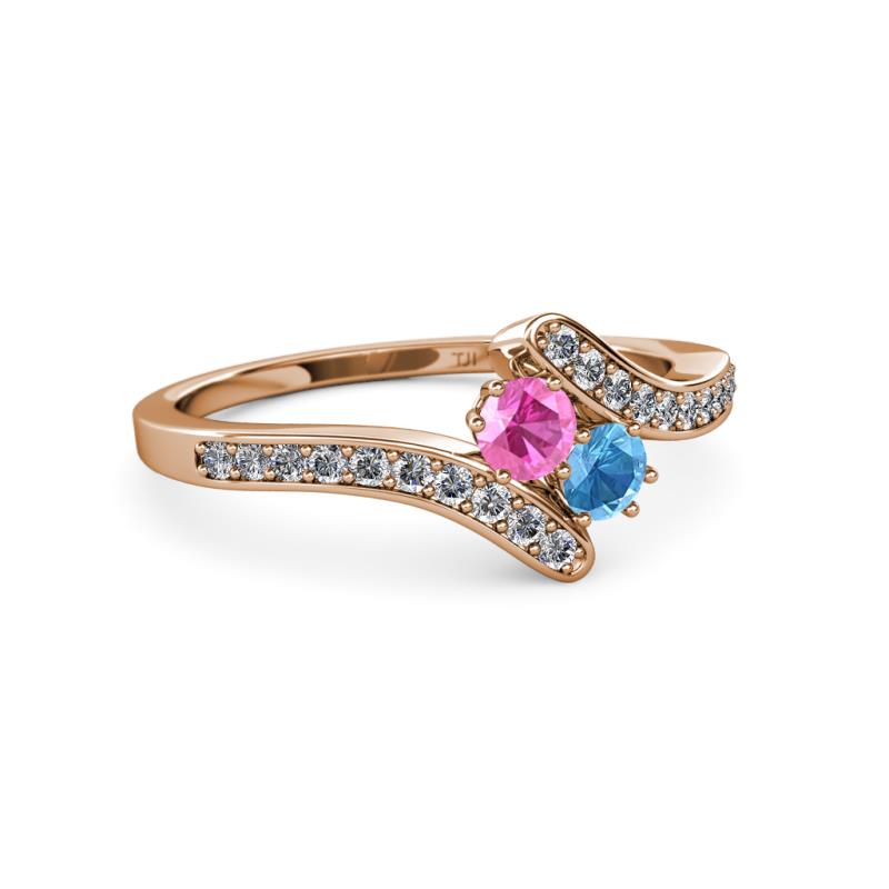 Pink Sapphire and Blue Topaz 2 Stone with Side Diamonds Womens Bypass Engagement Ring 0.73 ctw 14K Rose Gold More Details ...