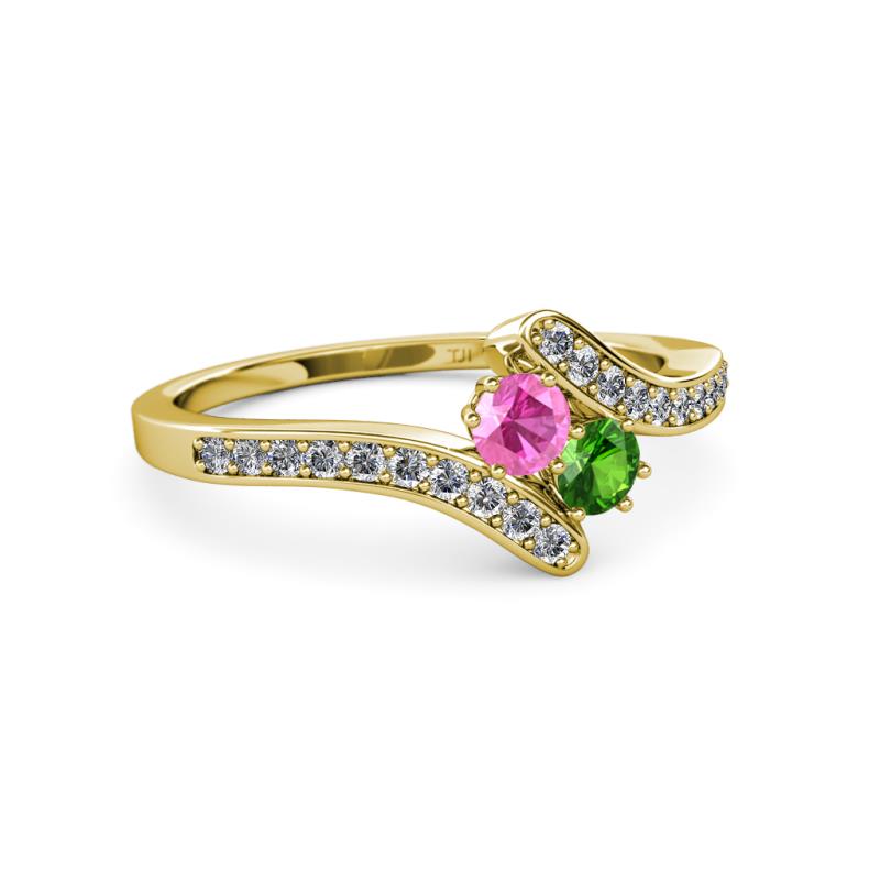 Pink Sapphire and Green Garnet 2 Stone with Side Diamonds Womens Bypass Engagement Ring 0.74 ctw 14K Yellow Gold More Details ...