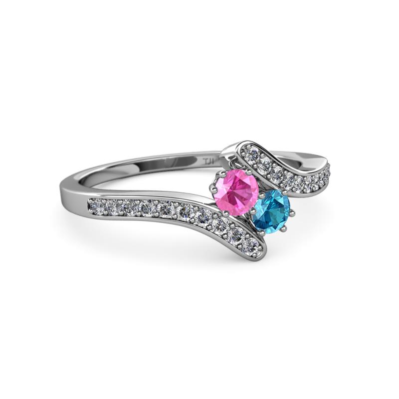 Pink Sapphire and London Blue Topaz 2 Stone with Side Diamonds Womens Bypass Engagement Ring 0.73 ctw 14K White Gold More Details ...