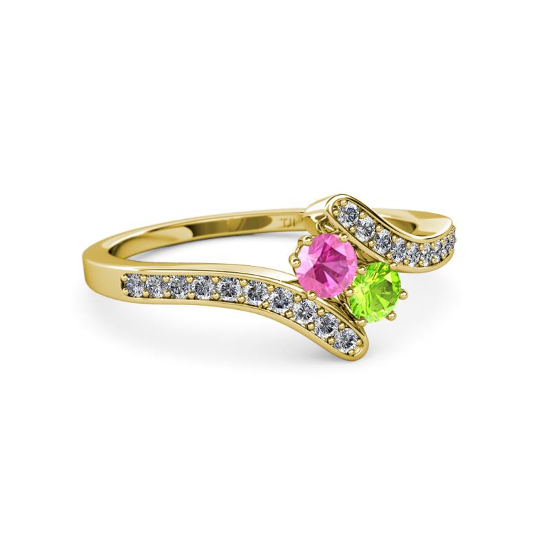 Pink Sapphire and Peridot 2 Stone with Side Diamonds Womens Bypass Engagement Ring 0.74 ctw 14K Yellow Gold More Details ...